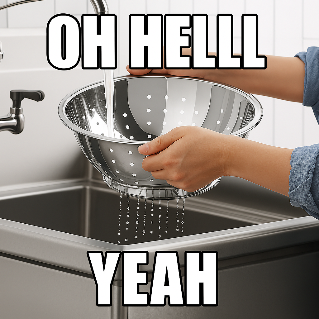 And by "it", I mean both. You'll have no colander and no dishwasher. And then what'll you do? Sob softly into your hands, probably. That's what I did.